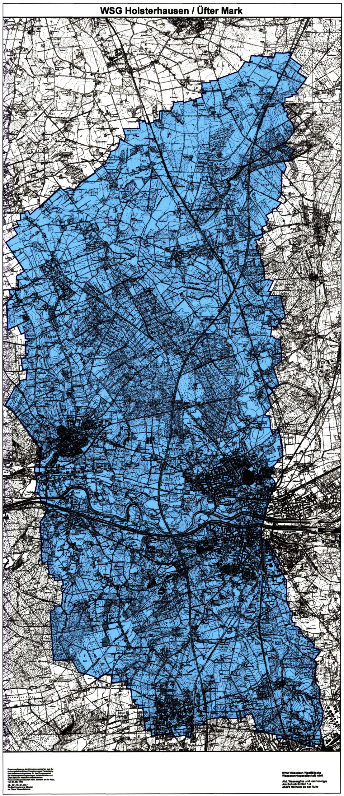 Am 15. August 1998 hat die Bezirksregierung Münster für beide Brunnengalerien das gemeinsame Wasserschutzgebiet Holsterhausen/Üfter Mark festgesetzt. Die Schutzgebietseinteilung erfolgte entsprechend den Regelwerken in Schutzzonen I, II, IIIA und IIIB. Zusätzlich wurde für den Bereich des Verbreitungsgebietes der Bottroper Mergel, in dem es in einem Gebiet zwischen Dorsten, Schermbeck und Gahlen zu einer Stockwerkstrennung der Grundwasserleiter kommt, eine zusätzliche Schutzzone IIIC ausgewiesen. Hierbei handelt es sich nicht um eine Wasserschutzzone im Sinne anderer Gesetze und Verordnungen. Vielmehr gilt es hier, die schützende Wirkung der Bottroper Mergel zu erhalten, indem beispielsweise das Durchbohren der Bottroper Mergel genehmigungspflichtig ist. Im Bereich der Brunnengalerie Holsterhausen konnte außerdem wegen der Schutzwirkung der Bottroper Mergel auf eine Ausweisung der Schutzzone II verzichtet werden. Die Schutzzone I umfasst den engeren Fassungsbereich der Förderbrunnen beider Galerien in einem Radius von 10 m.