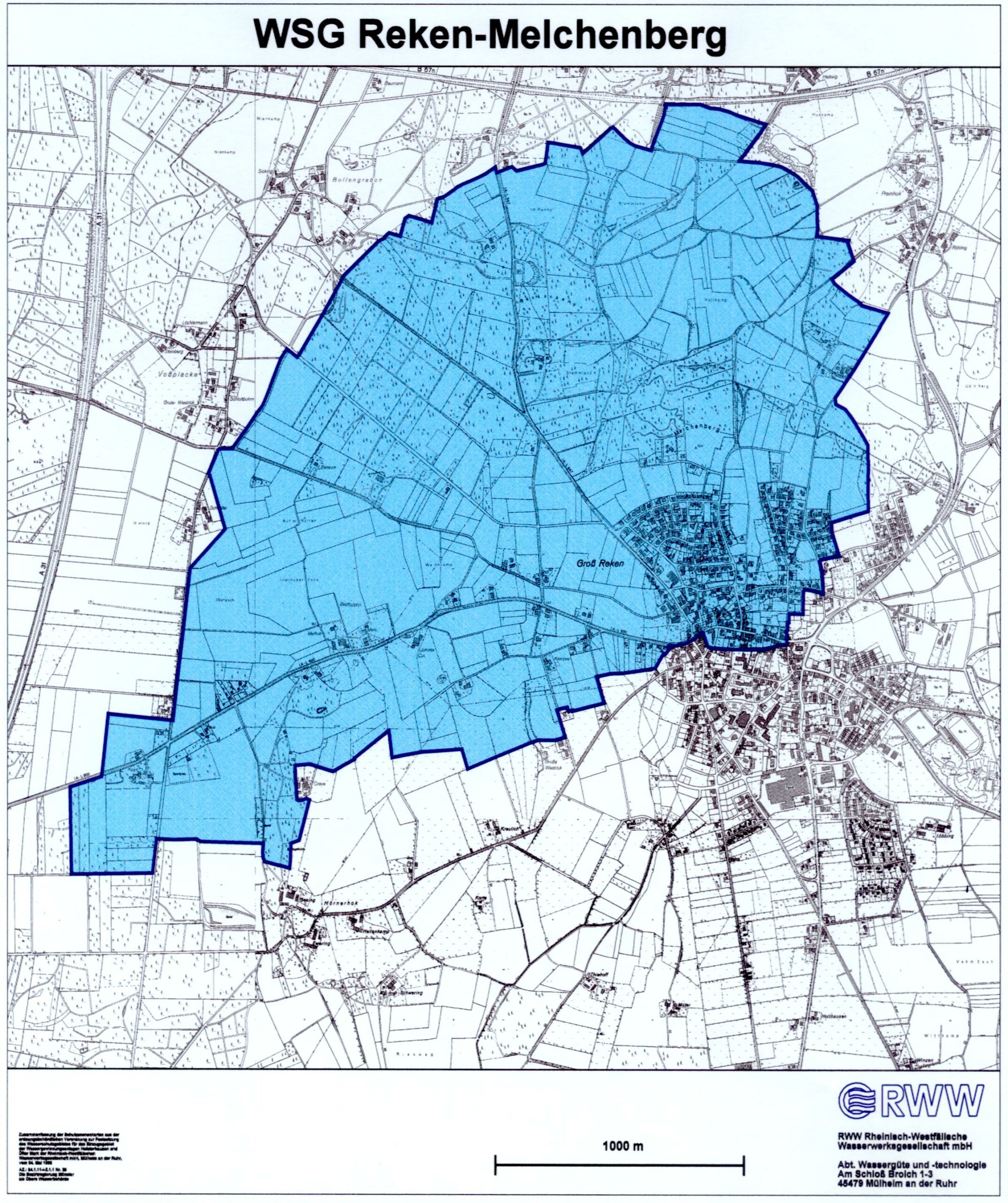 Am 14. Mai 1998 hat die Bezirksregierung Münster für das Wasserwerk Reken-Melchenberg ein Wasserschutzgebiet festgesetzt. Dieses ist entsprechend den Regelwerken in die Schutzzonen I, II, IIIA und IIIB unterteilt.